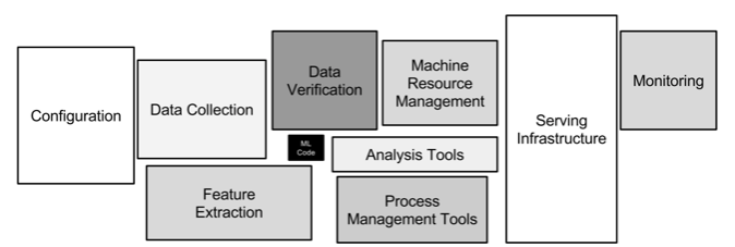 AI Platform Developer 라면 아래의 그림은 많이 봐왔을 것이다. 정 가운데에 있는 ML Code 는 데이터 사이언티스트들이 모델을 개발하는 코드인데, 이런 개발을 도와주거나 실제 서비스로 구축하기 위해서는 코드 이외에도 많은 Tool / System 들이 필요하다는 의미를 보여준다.