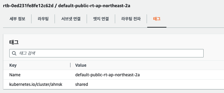 VM 에는 Kubernetes Cluster Name 을 Tag 로 지정한다. kubernetes.io/cluster/<cluster name> 과 같이 지정하는데 Cluster Name 은 Kubernetes 를 설치할 때 지정할 수 있다. 기본 값은 cluster.local 인데 여기서는 ahnsk 로 이름을 지정하였다.