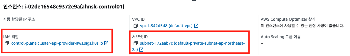 Control node 에는 control-plane.cluster-api-provider-aws.sigs.k8s.io role 을 할당한다.